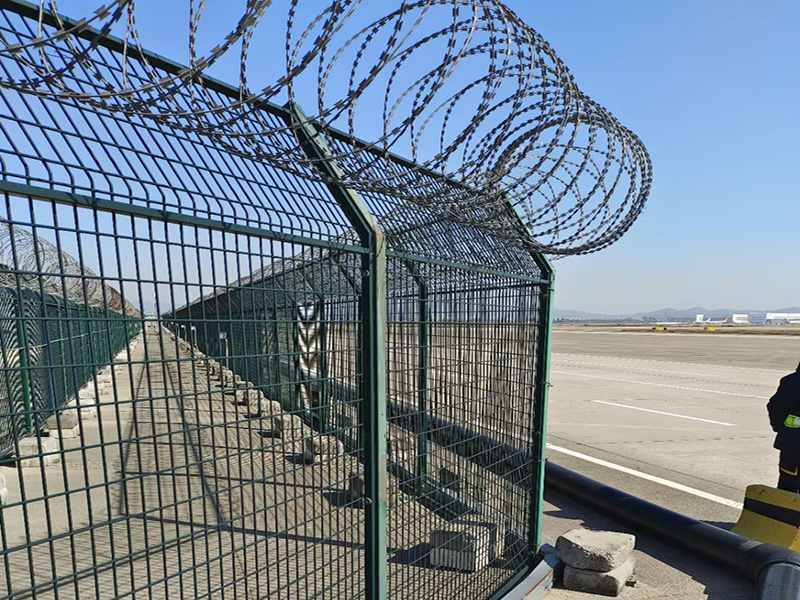 機場護欄網(wǎng)又稱作“Y型安全防御護網(wǎng)”,由Y型支架立拄,加強型焊接網(wǎng),安全防盜連接件和熱鍍鋅刀片刺網(wǎng)組成,是強度和安全防御性級別很高的圍界護欄網(wǎng)產(chǎn)品。被廣泛應用在機場、軍事基地等高安全場所。機場護欄網(wǎng)的突出特點就是美觀實用、安全性高、防攀爬能力好,網(wǎng)體連接方式采用特制SBS緊扣件,有效防止人為的破壞性拆卸,橫向四道折彎加強筋,使網(wǎng)面強度顯著增加。